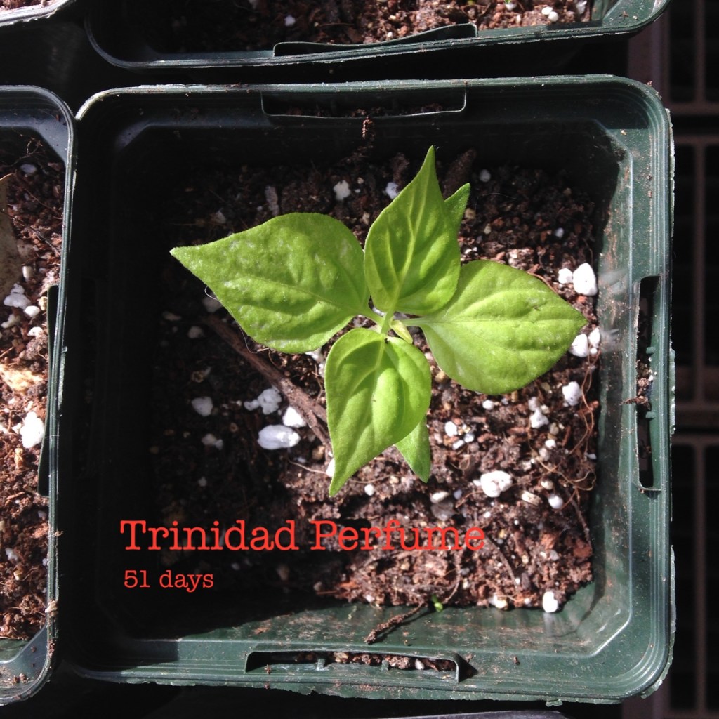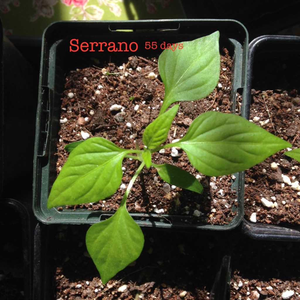 Chilli varieties with varying numbers of true leaves. Showing days since germination…