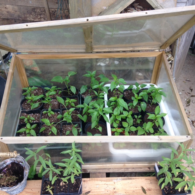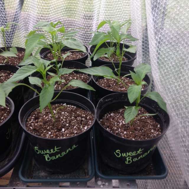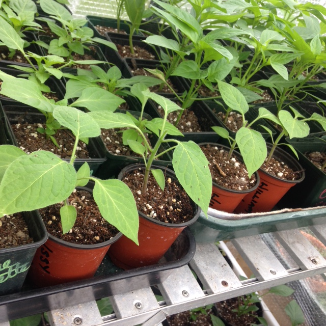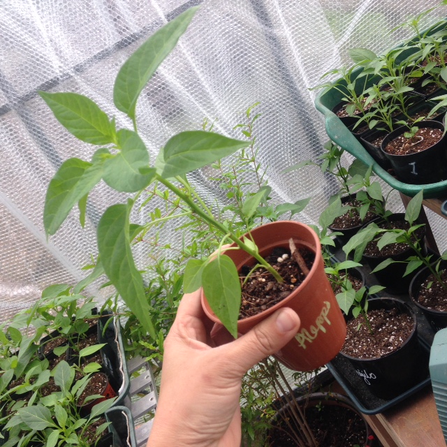 Last year the solo Rocoto plant we grew was a real pain in the greenhouse. Sprawling and brittle, it decided it needed other plants to support it. This made moving them around almost impossible. It was definitely worth the hassle (as is clear from the last minute seed planting) but there is nothing wrong with attempting to keep them more compact this year.