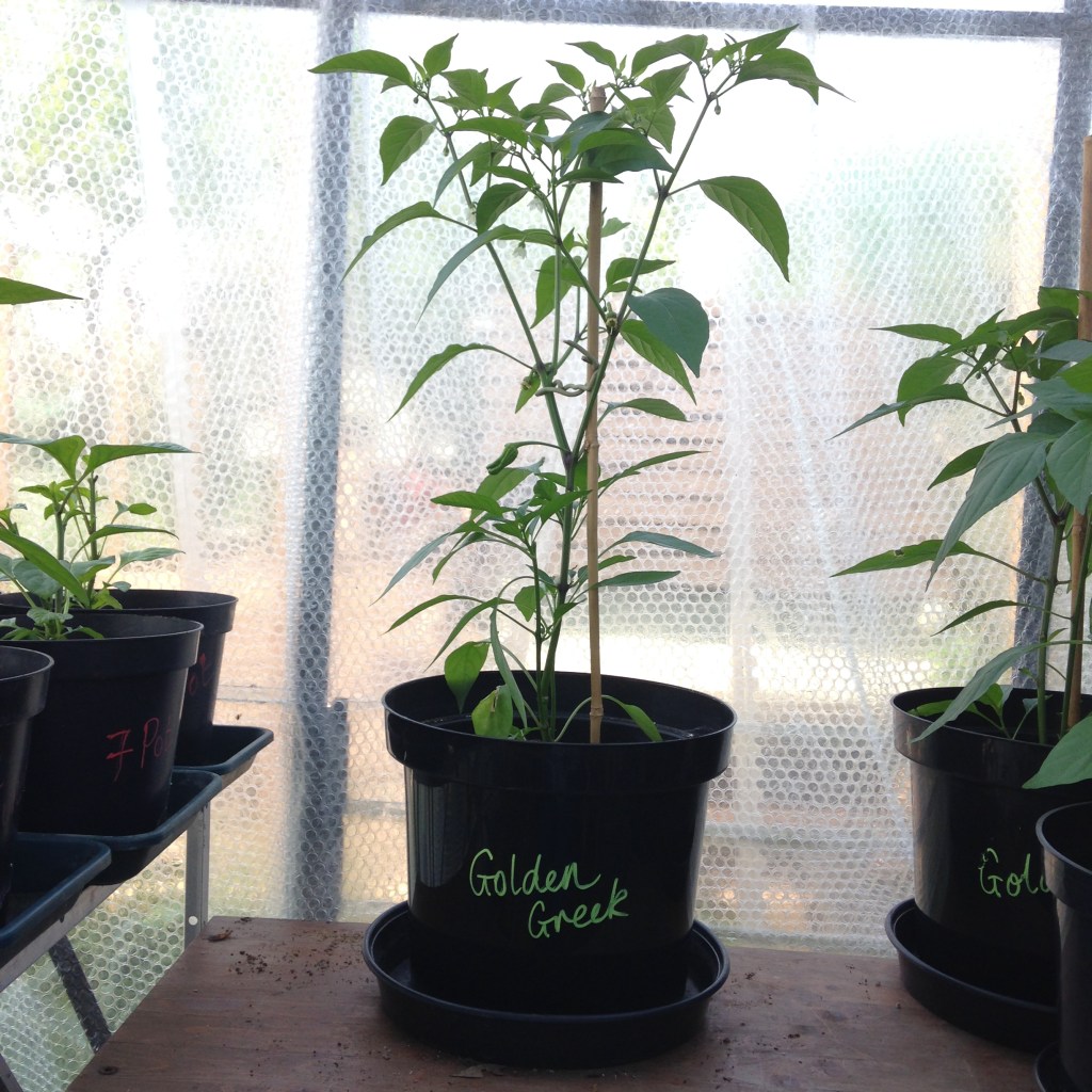 Meanwhile, in happier news, some of the bigger, earlier fruiters are just getting on with their thing. Golden Greek Pepperoncini is smothered with flower and fruit. Oh, and the roots are out the bottom again. Time to reach for the soldering iron and make some holes in the bottom of those flower buckets because potting on is in the diary for the weekend AGAIN.