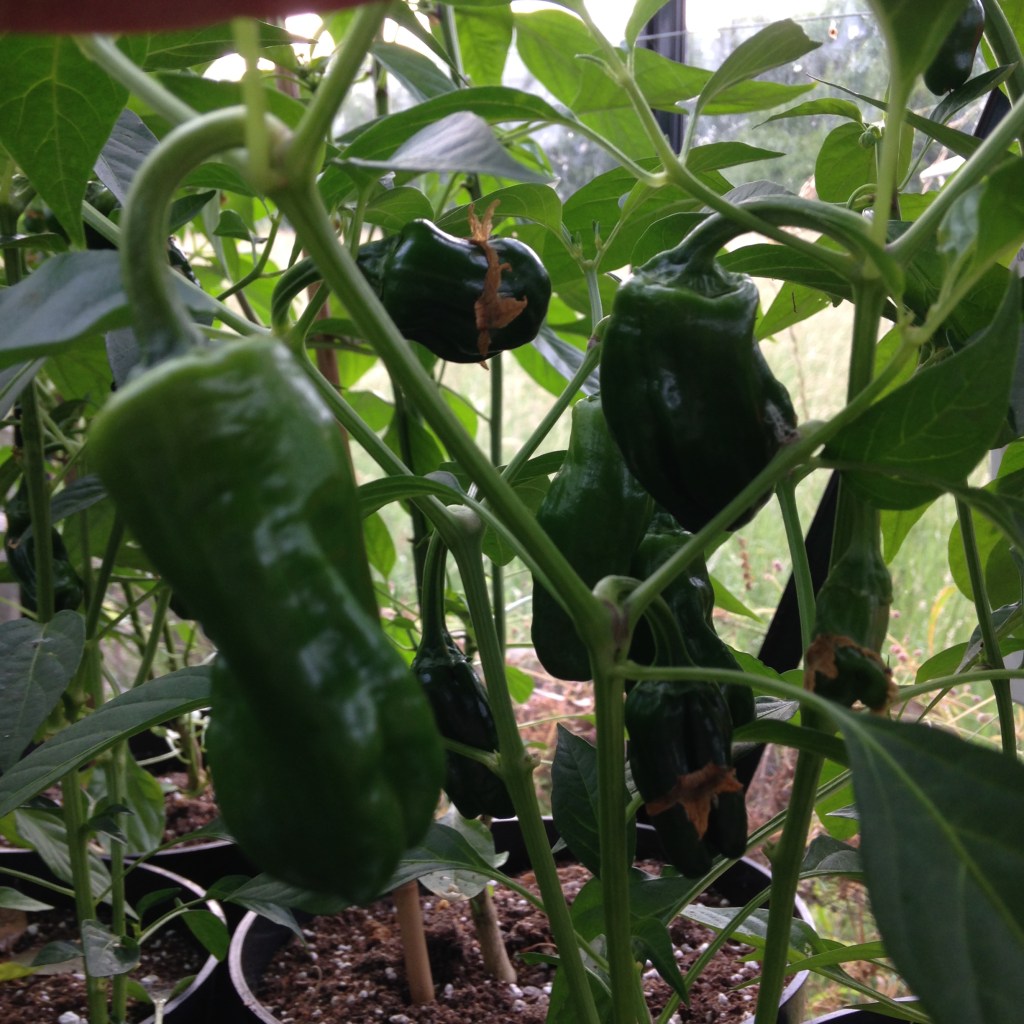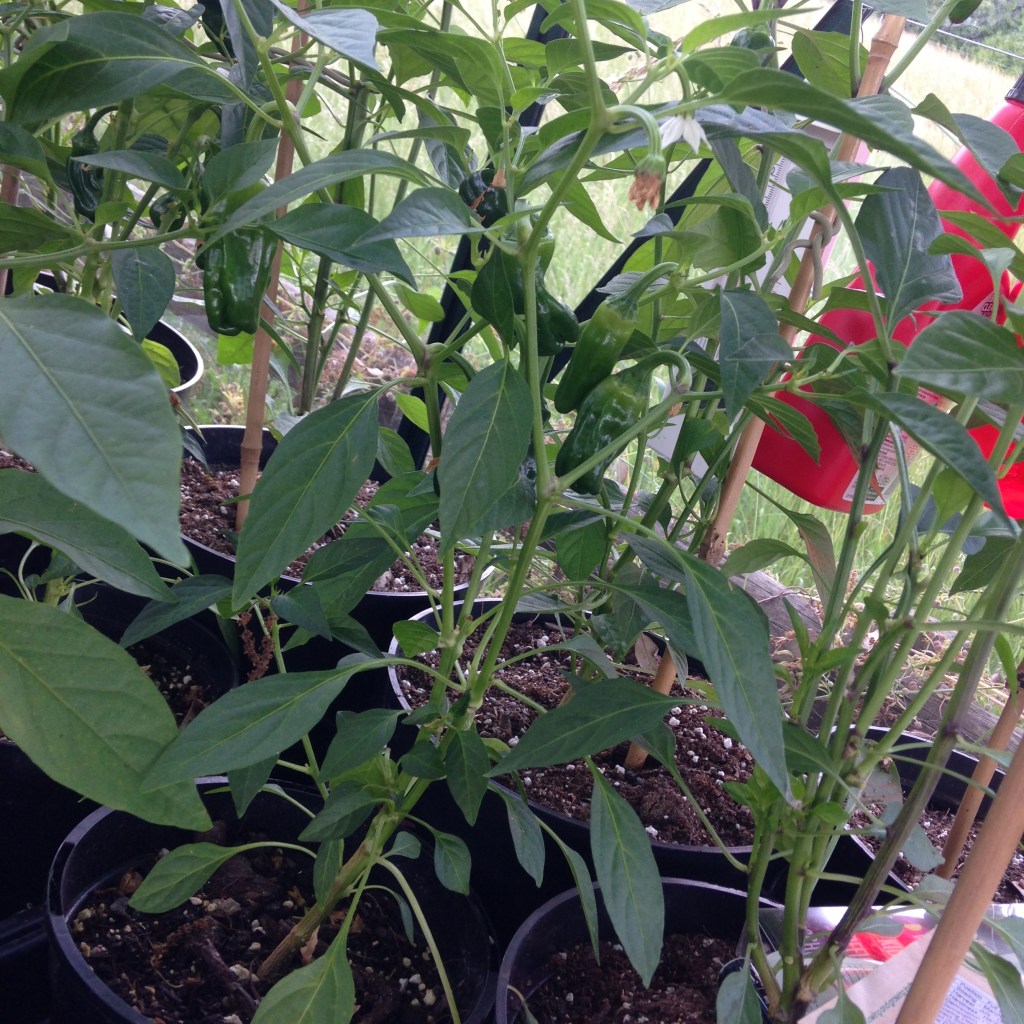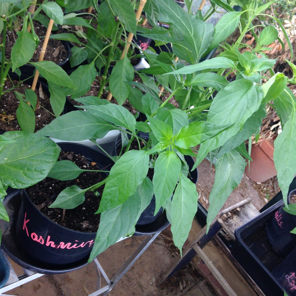 They are planted into 5L pots and are heading towards a metre in height already. Might pop them in the 10Ls and feed them up a bit to encourage roots as well and fruits. Can’t wait to see how they end up. We’re hoping to dry and grind these into a tasty paprika.