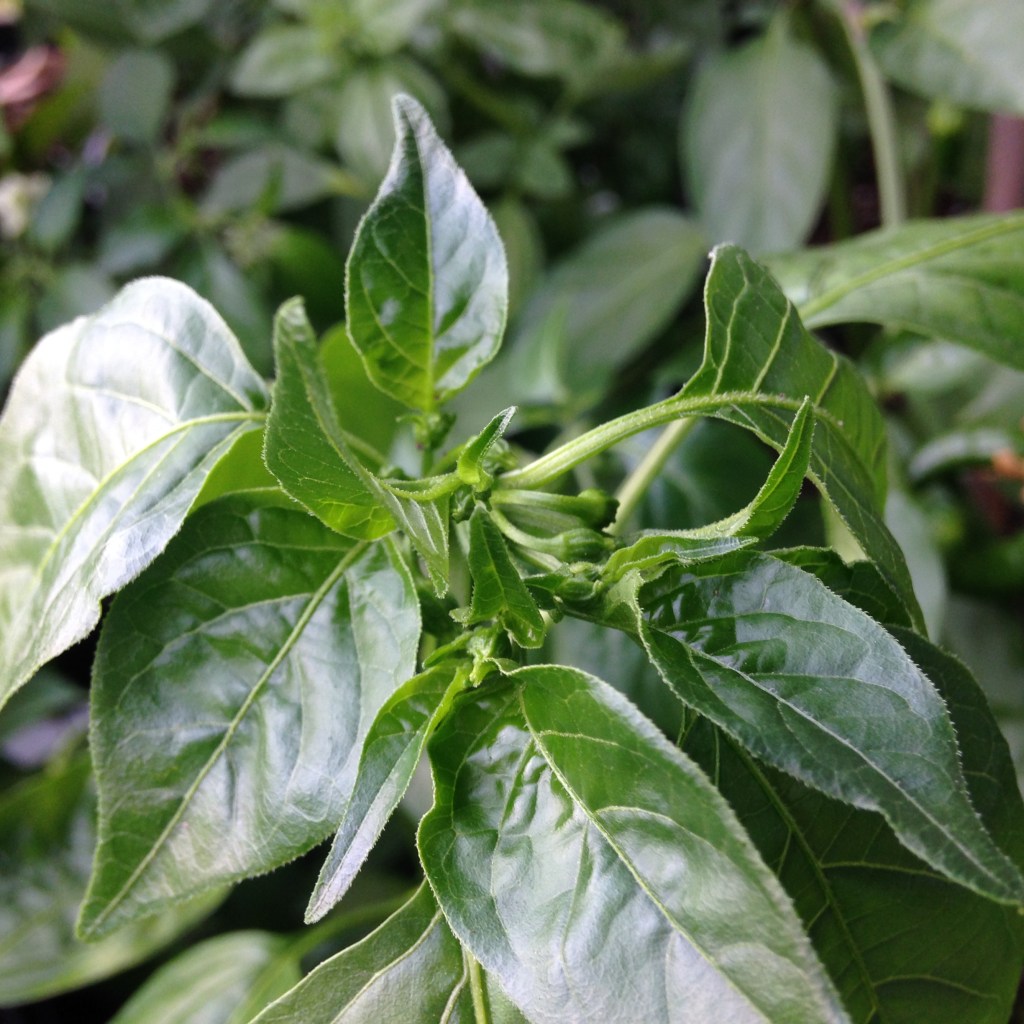 It would have been just plain rude to offload surplus plants onto a neighbour without reciprocating and adopting a few extra chilli babies. Birds Eye is one such adoptee. Planted a little later than our chillies it is yet to reach flowering stage but the teeny tiny buds are already visible in clusters a top the good green foliage. It is currently 50cm in a 3L pot.