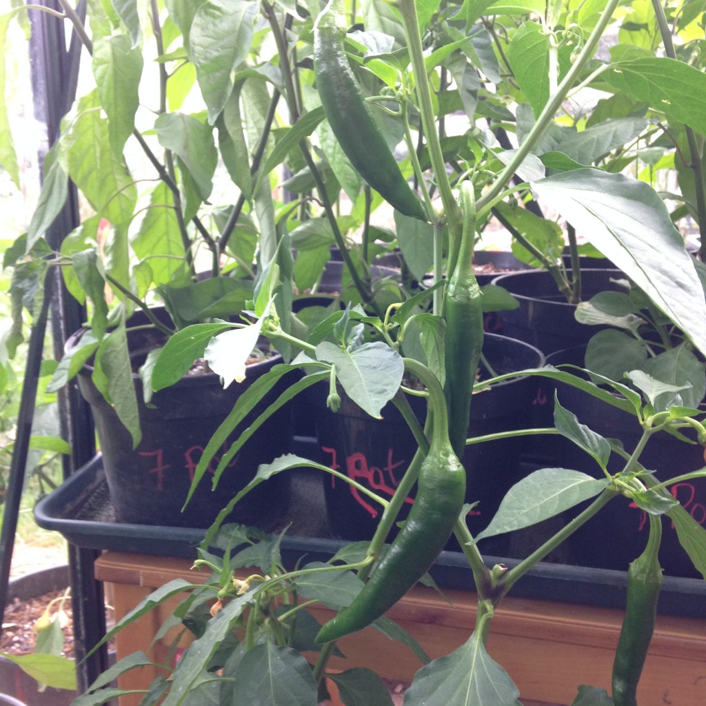 They really do look like bananas. They have as much heat as a banana too. Not that they are meant to be spicy really. The plants are outside in 10L pots. The first pods have been removed to encourage further flowering. Not much second round flower action yet.