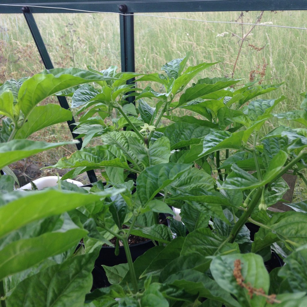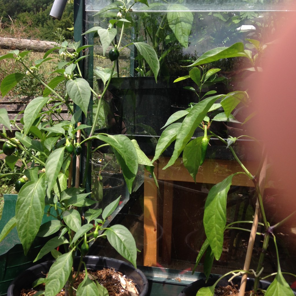 Everything is looking pretty fresh and green, despite recent erratic weather patterns. Lots of flowers on display and plenty of young pods. All protected, populated and pollinated by a veritable army of ladybirds partnered with a daily fly by from the hoverfly squadron. A few Annuums are dropping flowers, a few are giving up flowering now they’ve produced a pod or two but on the whole all is well in the Birdhouse greenhouse (and now surrounding area).