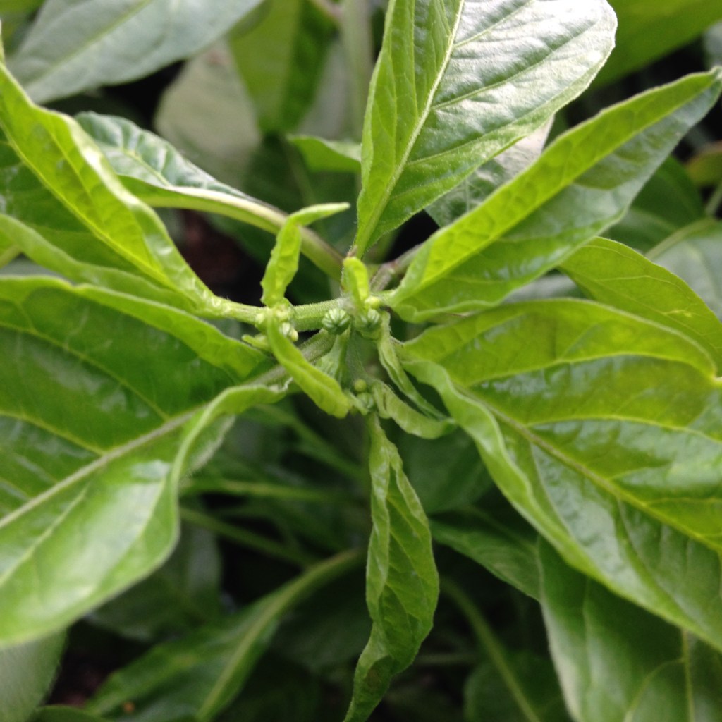 The plants are showing chinense characteristics: determinate plants with branches covered in lime flowers. These flowers have very stubby little petals. Fruit looks like it is setting. In 3L pots but will soon be into a final 5L.