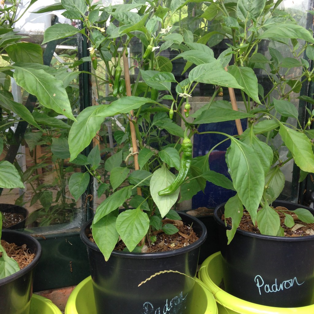 The Padrons have been growing, flowering, fruiting and repeating for some time now. They were the first plants to move outside and the first into the 10L buckets. They are looking really settled, no sign of flower drop and are casually leaning on the outside of the greenhouse, just hanging out, doing their thing. Best pan fried with a crush of sea salt, perfect with paella.