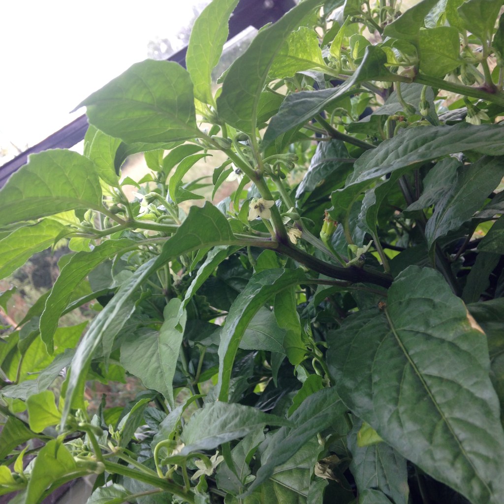 Residing in 3L pots, approximately 60cm tall, the Serranos are casually doing their thing. The seeds were sent as a freebie and so far they are doing A OK. We have three plants, one is really tall, dark and hairy. One is very bushy, covered in flowers and little fruit. And the other is nowhere near as advanced in height or maturity. It just goes to show how each plant is a little different.